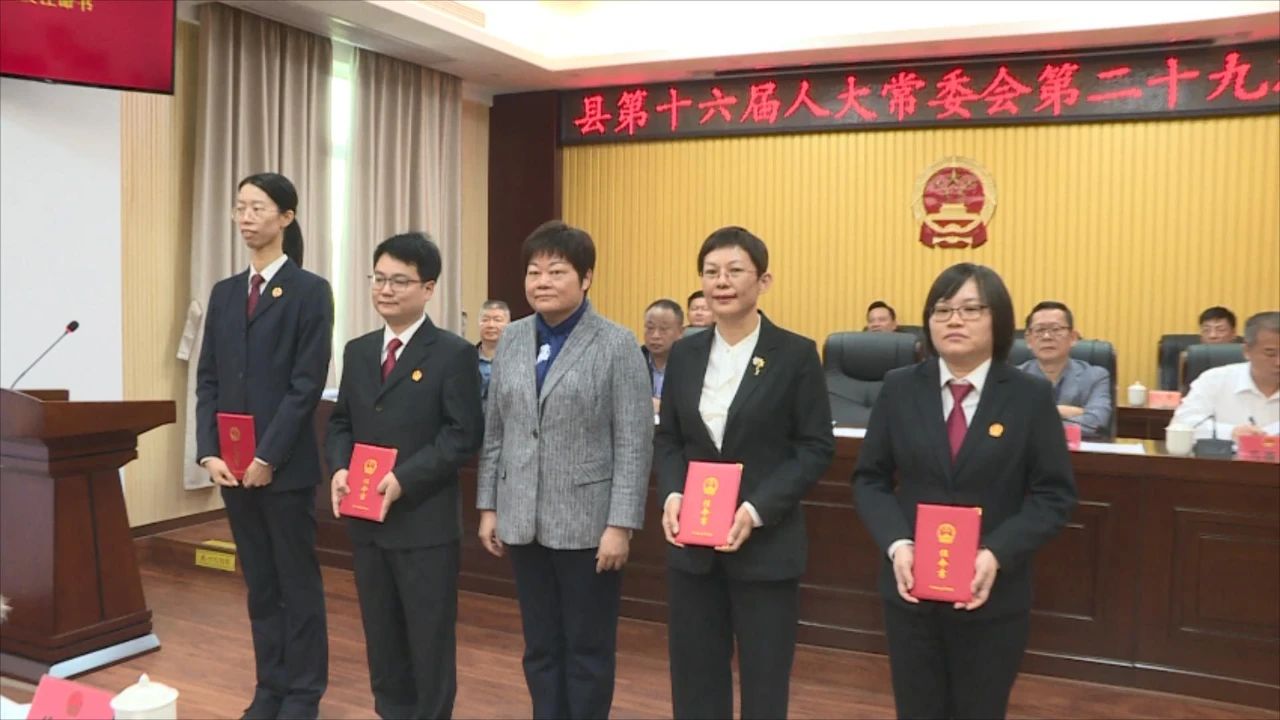 邱翠茂为新任命同志颁发任命书;新任命同志向宪法宣誓。