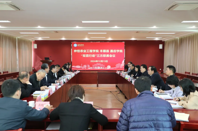 12月13日上午,仲恺农业工程学院·丰顺县·嘉应学院“双百行动”三方联席会议在嘉应学院召开,研究部署下一阶段“双百行动”工作,进一步深化校地交流合作,推动“双百行动”各项任务落地落实,携手打造校地结对共建样板。仲恺农业工程学院党委副书记、校长廖明,嘉应学院党委副书记、校长陈文海,丰顺县委书记张志锋出席会议并讲话。仲恺农业工程学院党委常委、副校长张文峰参加会议,嘉应学院党委常委、副校长廖志成主持会议。