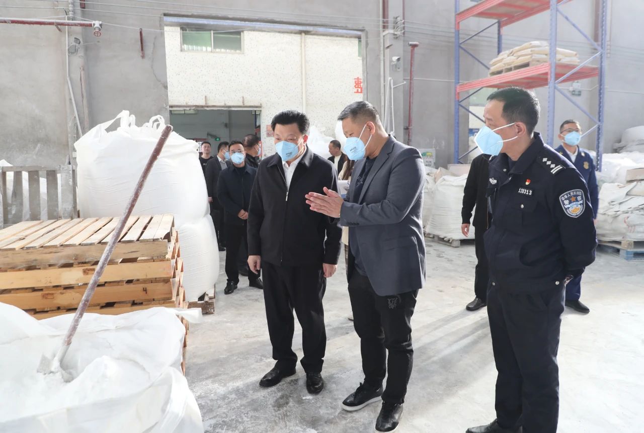 图为丰顺县委书记张志锋到广东宇星阻燃新材料有限公司督导检查安全生产工作。