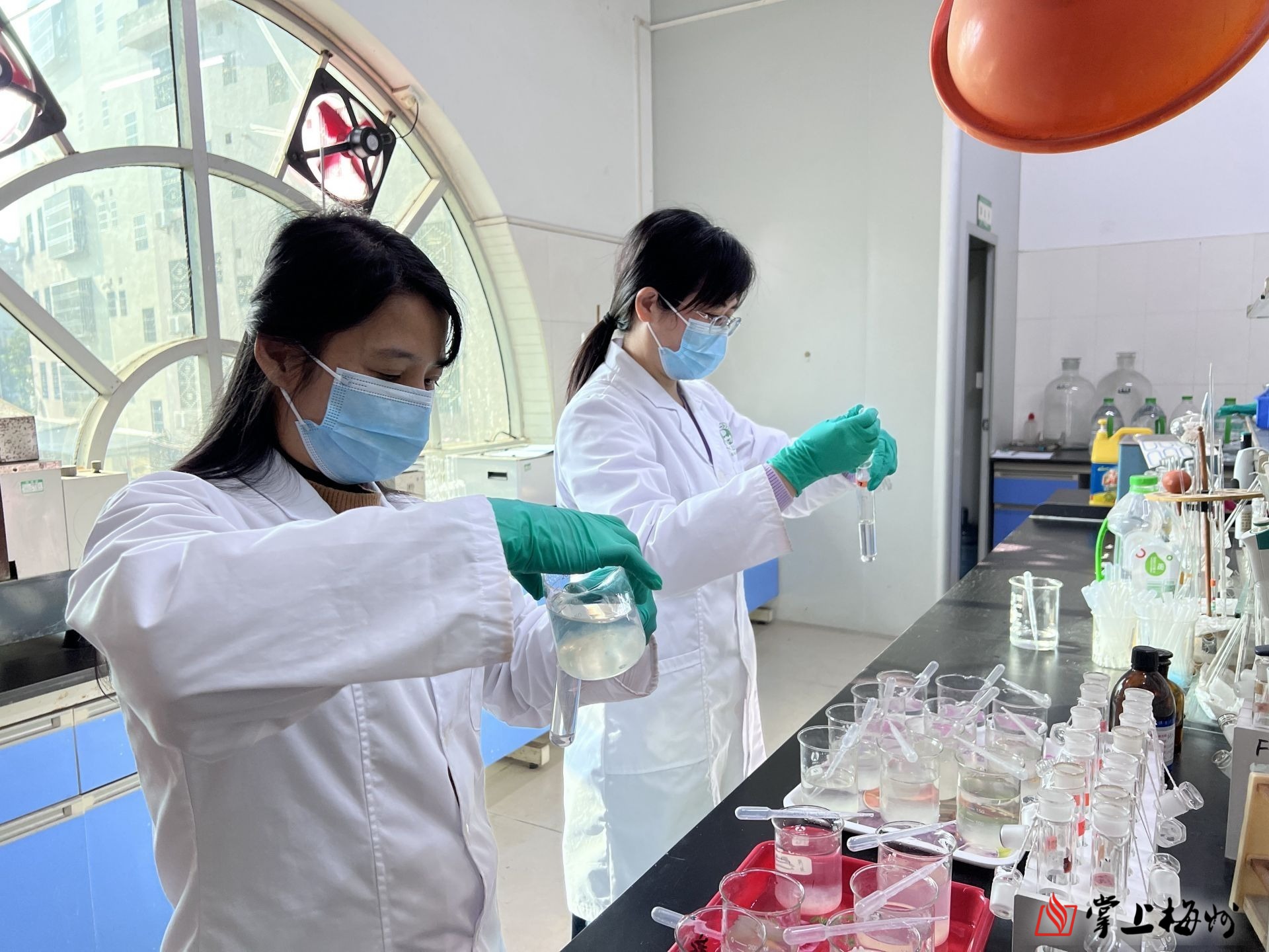 梅州市丰顺生态环境监测站工作人员在对水质进行检测。(王锐 摄)
