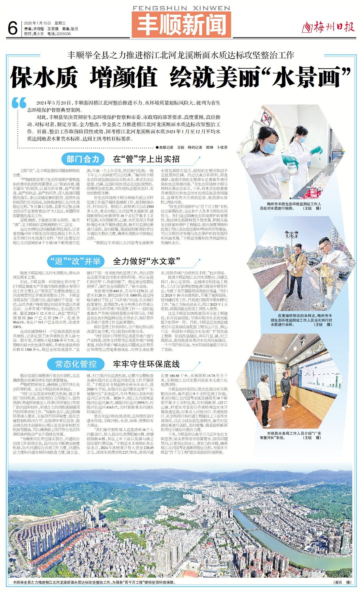 对此,丰顺县坚决贯彻省生态环境保护督察和市委、市政府的部署要求,高度重视,高位推动、对标对表,制定方案,全力整改,举全县之力推进榕江北河龙溪断面水质达标攻坚整治工作。目前,整治工作取得阶段性成效,国考榕江北河龙溪断面水质2024年1月至12月平均水质达到地表水Ⅲ类水标准,达到上级考核目标要求。