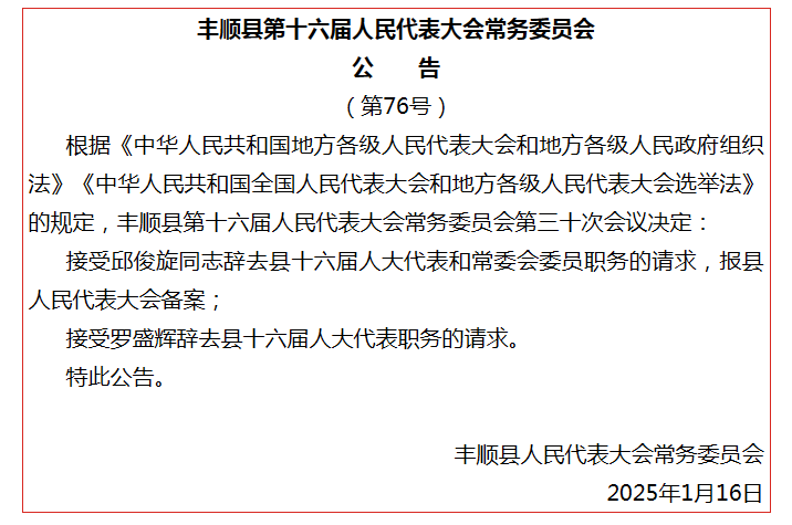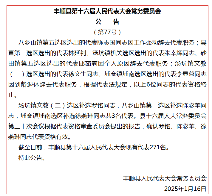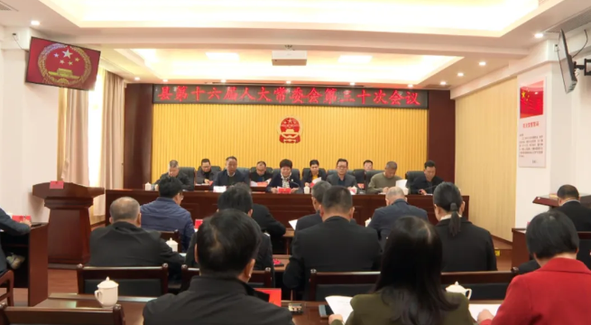 会议审议通过关于县第十六届人民代表大会代表出缺和补选的代表资格审查报告(草案);审议决定若干人事任免事项。