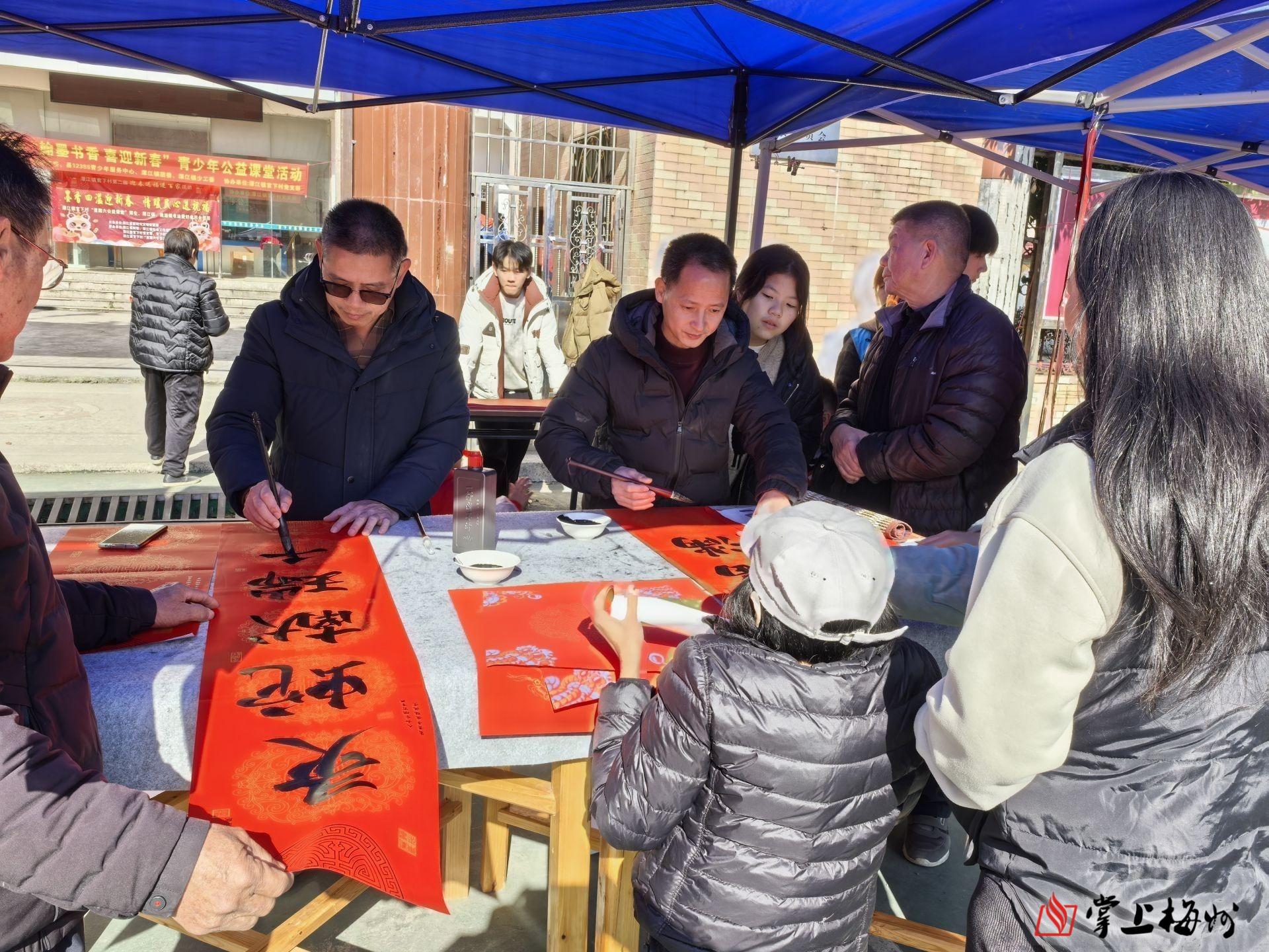 阵阵墨香指尖流,幽幽韵味心脾沁。活动现场,红纸铺陈,墨香四溢,一派喜气洋洋的景象。几位书法爱好者挥毫泼墨,笔走龙蛇,一副副寓意吉祥、充满年味的春联在他们的笔下跃然而出。村民们围在旁边,或认真观赏,或细细品味,对书法爱好者们的精湛技艺赞不绝口。