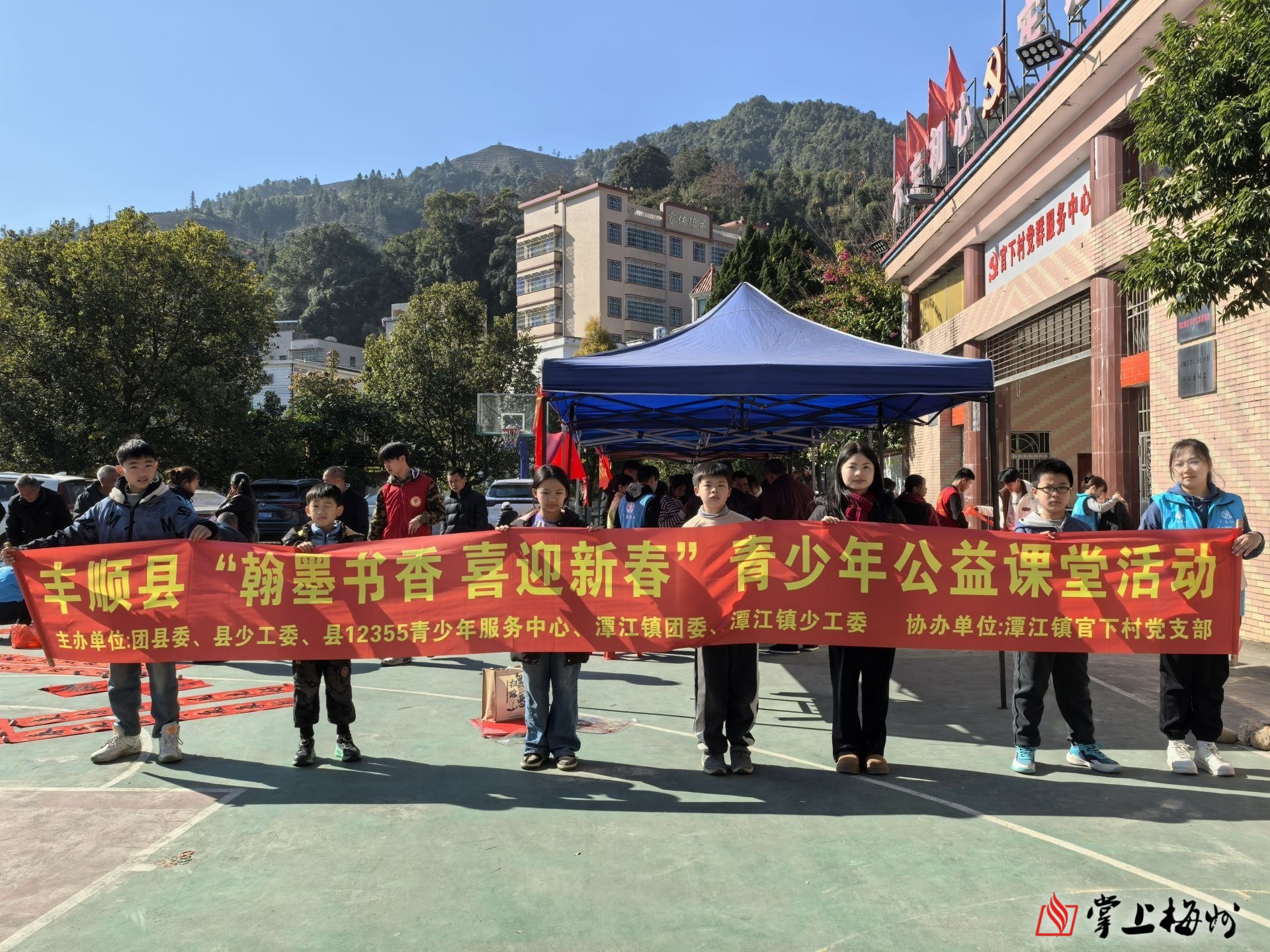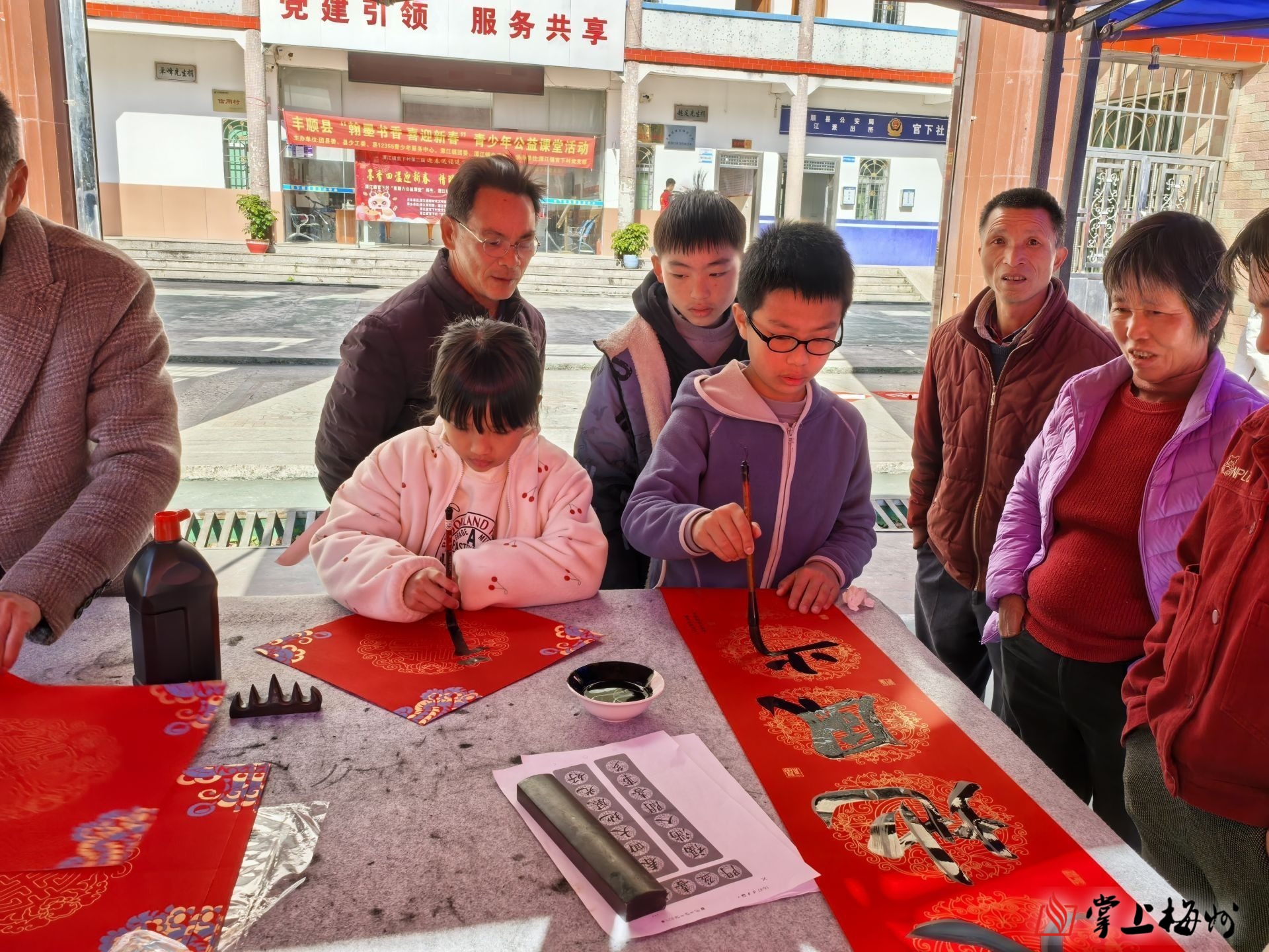掌上梅州讯 福赠春联祈平安,奋笔挥毫迎新春。临近春节,年味渐浓,1月17日,由丰顺团县委、潭江镇团委主办的丰顺县“翰墨书香 喜迎新春”青少年公益课堂活动在潭江镇官下村举行。现场墨香四溢,欢声笑语不断,书法爱好者和青少年们齐聚一堂,携手书写春联,送上最美新春祝福。