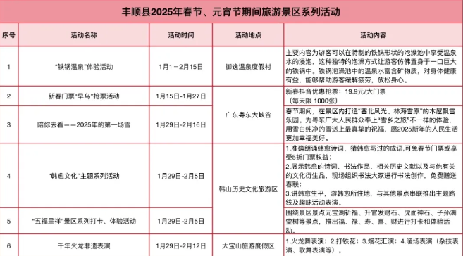 3.丰顺县2025年春节、元宵节期间旅游景区系列活动↓↓↓