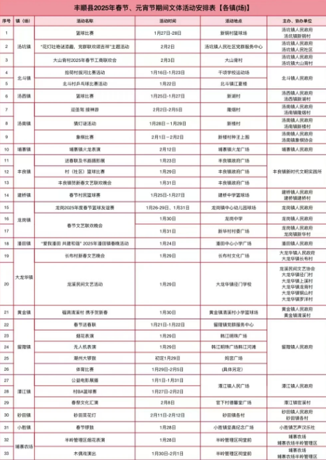 2.丰顺县2025年春节、元宵节期间文体活动安排表【各镇(场)】↓↓↓