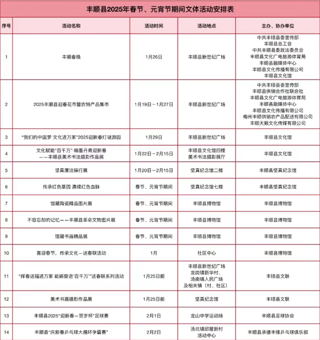 1.丰顺县2025年春节、元宵节期间文体活动安排表↓↓↓