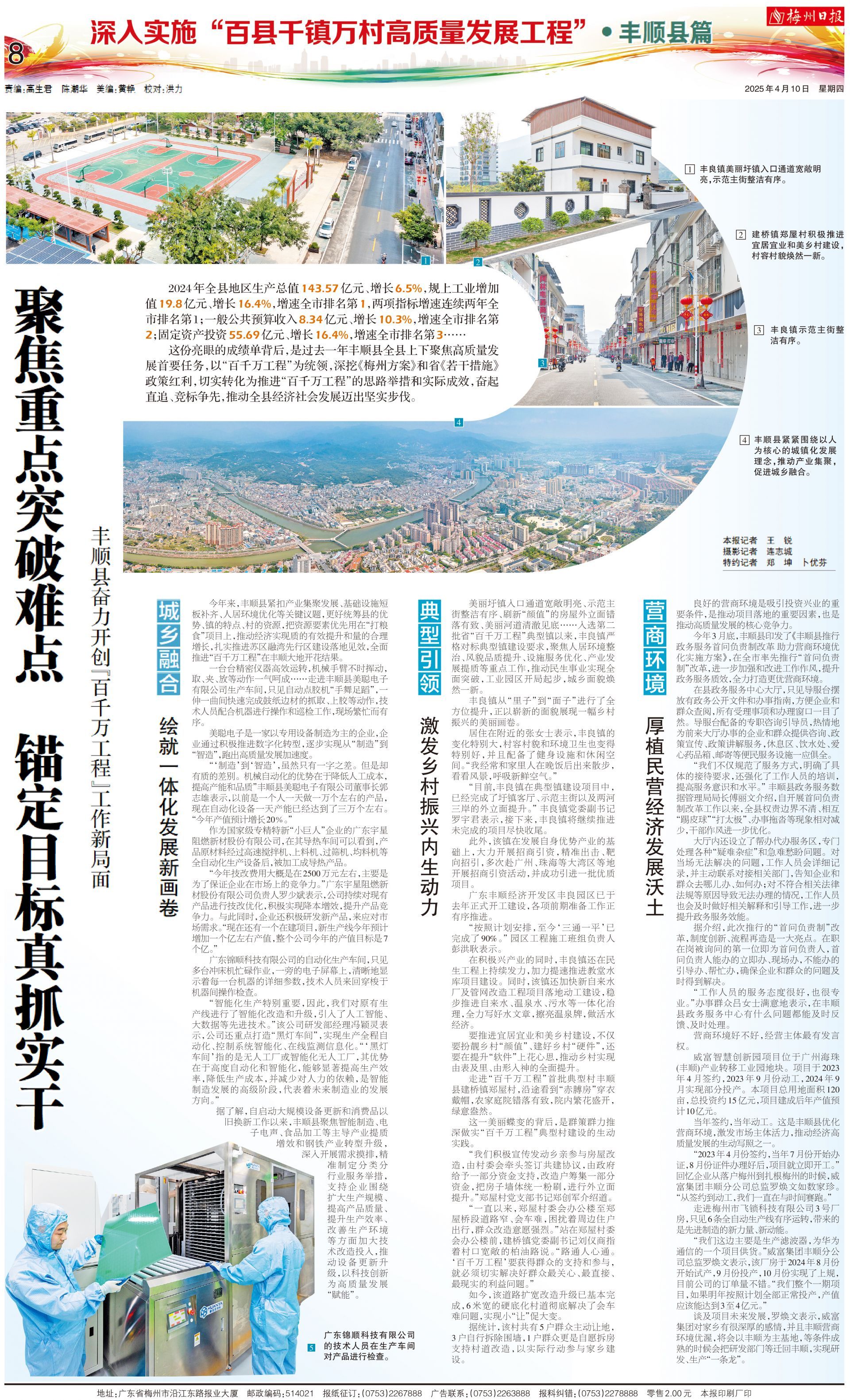 这份亮眼的成绩单背后,是过去一年丰顺县全县上下聚焦高质量发展首要任务,以“百千万工程”为统领,深挖《梅州方案》和省《若干措施》政策红利,切实转化为推进“百千万工程”的思路举措和实际成效,奋起直追、竞标争先,推动全县经济社会发展迈出坚实步伐。