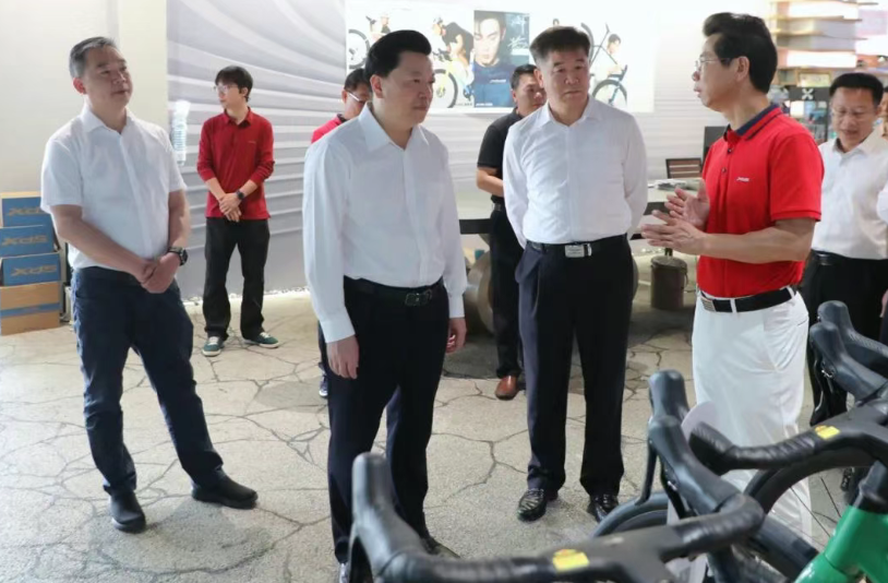 图为县委书记张志锋一行到深圳市喜德盛自行车股份有限公司参观考察