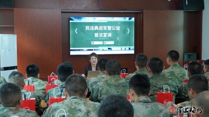随后,梅州市律师协会副会长、广东广信君达(梅州)律师事务所负责人、丰顺县民法典宣传团成员李娜律师聚焦部队官兵实际需求,围绕民法典中军人军属权益保护的重点内容开展专题讲座。李娜律师运用通俗易懂的语言、生动鲜活的案例,深入讲解了婚姻家庭保护、财产权利保障、见义勇为等与官兵生活息息相关的热点问题。此外,李娜律师还介绍了法律援助的相关政策和申请流程,让官兵们明晰权益保障途径,让他们知道在遇到法律问题时如何寻求帮助,进一步提升官兵的依法维权能力。