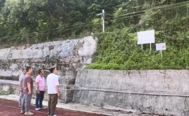 在汤坑镇埔河村侨思学校地质灾害隐患点,汤坑镇执法队工作人员与埔河村村“两委”干部前往临山建筑等重点场所,仔细查看隐患点周边环境,重点检查边坡陡坎处是否存在裂缝、坍塌、土质松动等情况。