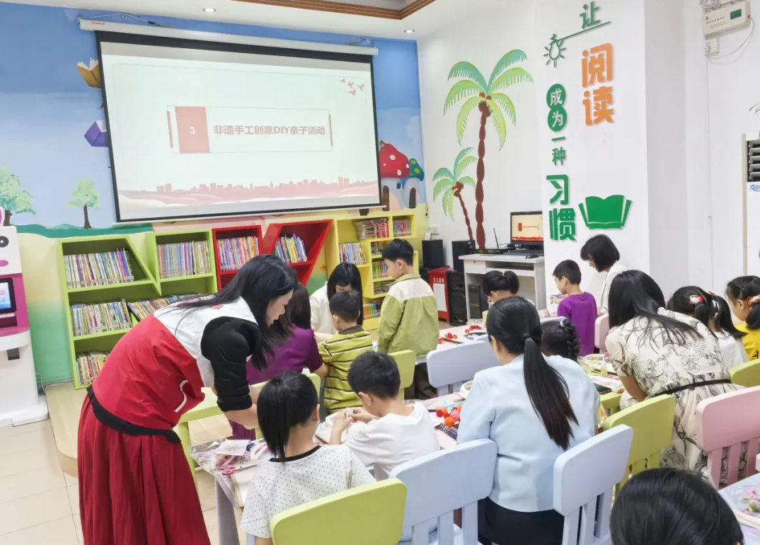 随后,在非遗手工创意DIY亲子活动中,家长和孩子纷纷在麻布包上粘贴国潮脸谱,让大家在实践中感受到了非遗文化的魅力,激发了他们对传统文化的热爱和传承意识。