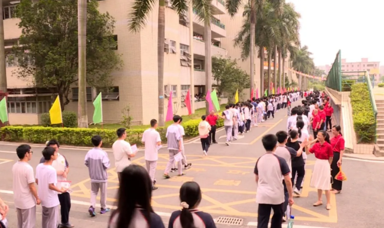 上午七点五十分,记者在丰顺中学考点看到,考生们昂首挺胸地穿过“祝福长廊”,与身着“状元红”上衣的送考老师们逐一击掌,传递信心与力量。