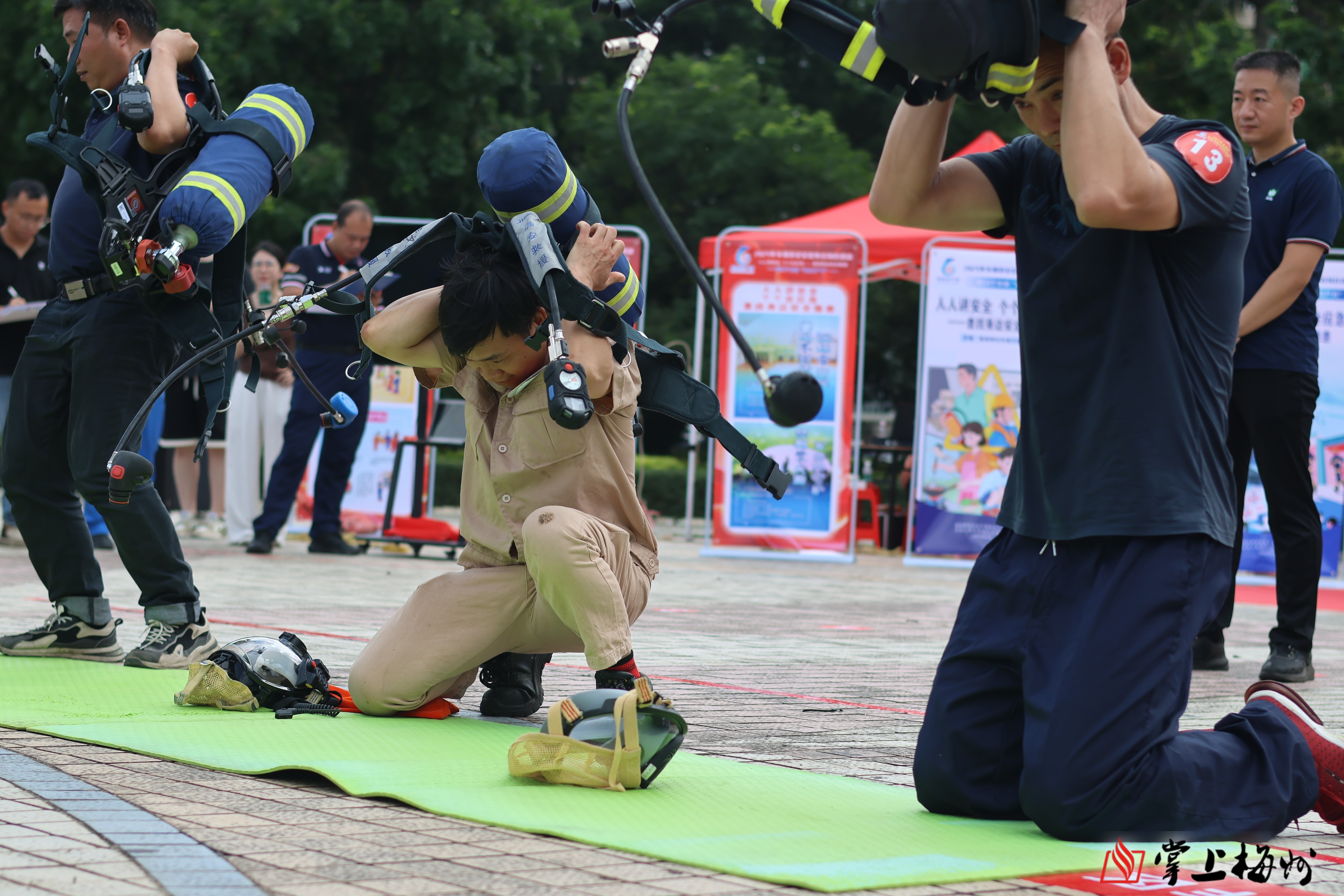 在职工安全生产技能竞赛区,来自全县各企业的职工积极参与身边隐患识别、竞速灭火、佩戴空气呼吸器等竞赛项目。他们精湛娴熟的操作技能赢得了现场观众的阵阵热烈掌声,进一步促进了安全技能的交流与提升。