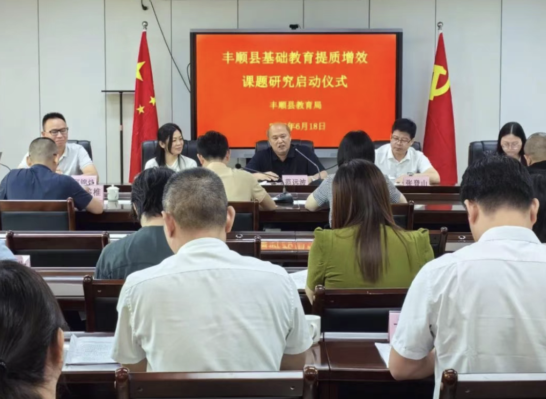 6月18日上午,丰顺县教育局联合嘉应学院在县教育局501会议室举行基础教育提质增效课题研究启动仪式。嘉应学院教育科学学院院长范远波、副院长张登山,副教授沈辉香博士,彭淑娜博士,“双百行动”驻丰顺县服务队副队长邱锦炜等专家团队,县教育局党组书记、局长张武珍,副局长叶韩杰、谢锐,县教师发展中心和局机关相关股室负责同志,10所学校校长等参加启动仪式。会议由叶韩杰主持。