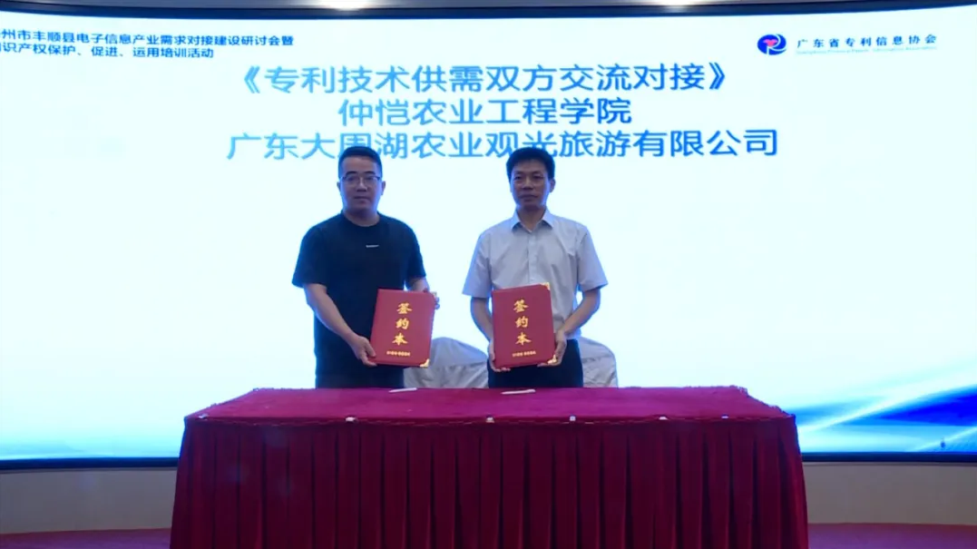 活动现场,县府办相关负责人深入解读了《创新驱动·应用赋能——技术成果转化研讨》,现场进行高价值专利布局及电声专利市场化应用案例分享,知识产权金融赋能培训,建行知识产权质押融资暨科创企业产品推荐会,与会人员围绕主题进行交流研讨。期间还举行了专利供需对接仪式,仲恺农业工程学院与广东大周湖农业观光旅游有限公司签署合作意向书,推动校企协同合作,为丰顺产业注入新动能。