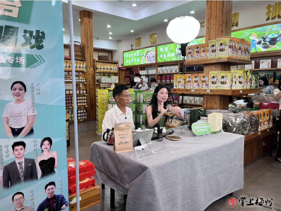直播间里,丰顺高山茶油、松茸面、客家炒绿、土鸡、黄金可口姜糖等特色农产矩阵精彩亮相,每一款产品都承载着丰顺的自然禀赋与人文特色。