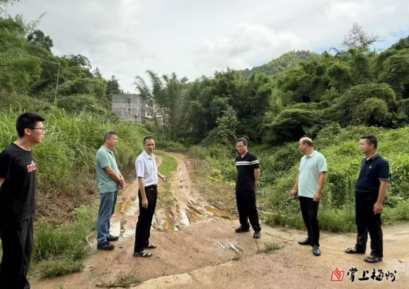 图为人大代表朱章炉、彭淡水与工作队在实地察看