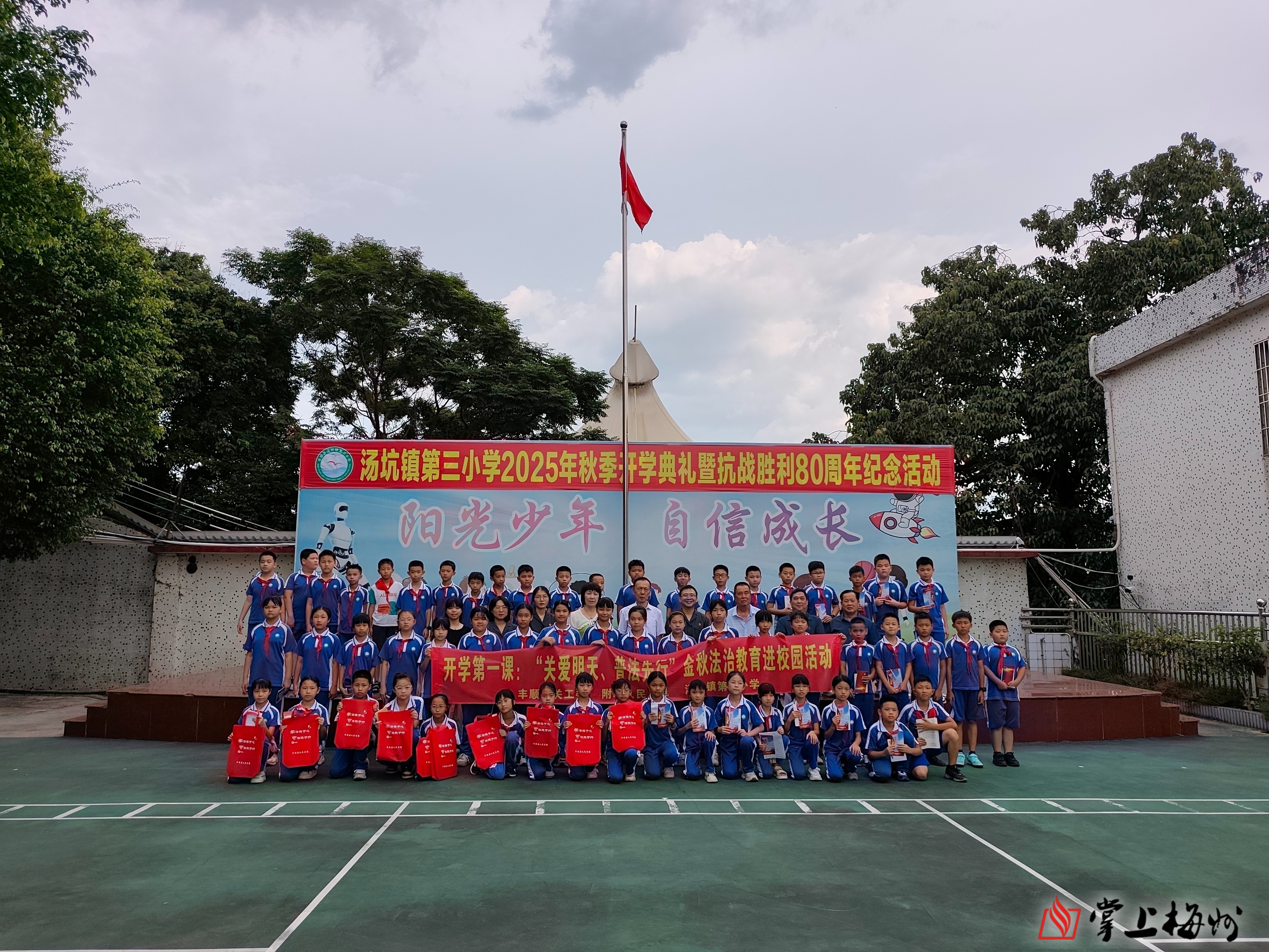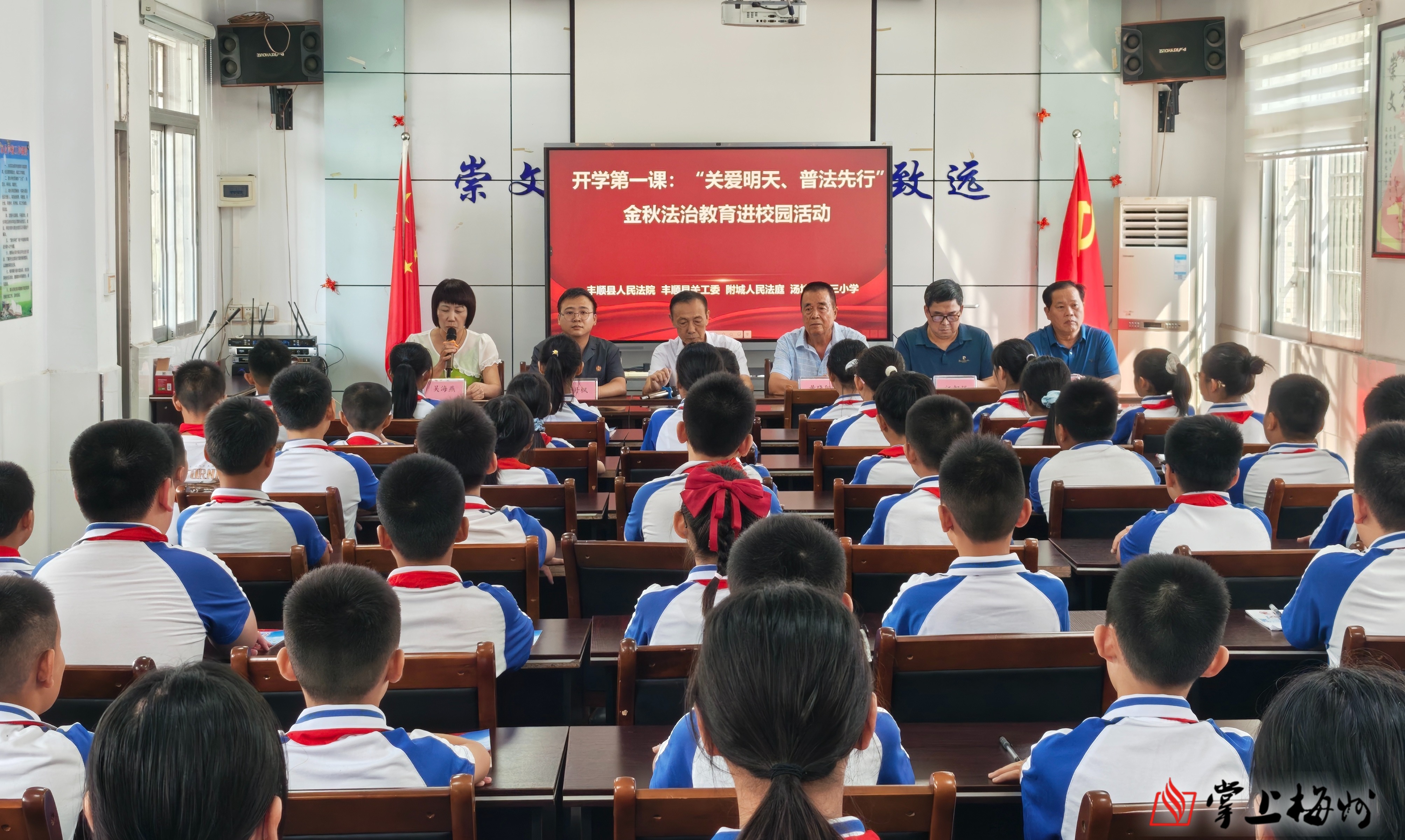 掌上梅州讯 9月4日,丰顺县关工委联合丰顺县人民法院附城法庭,到汤坑镇第三小学开展“开学第一课:关爱明天、普法先行”金秋法治教育进校园活动。县关工委主任巫自华、副主任黄晓阳,县人民法院审判管理办公室书记员张艳玉,附城法庭法官助理徐丹枫、黄丹妮、李俣琪,以及汤坑镇第三小学副校长吴海燕和五年级60多名学生参加活动。