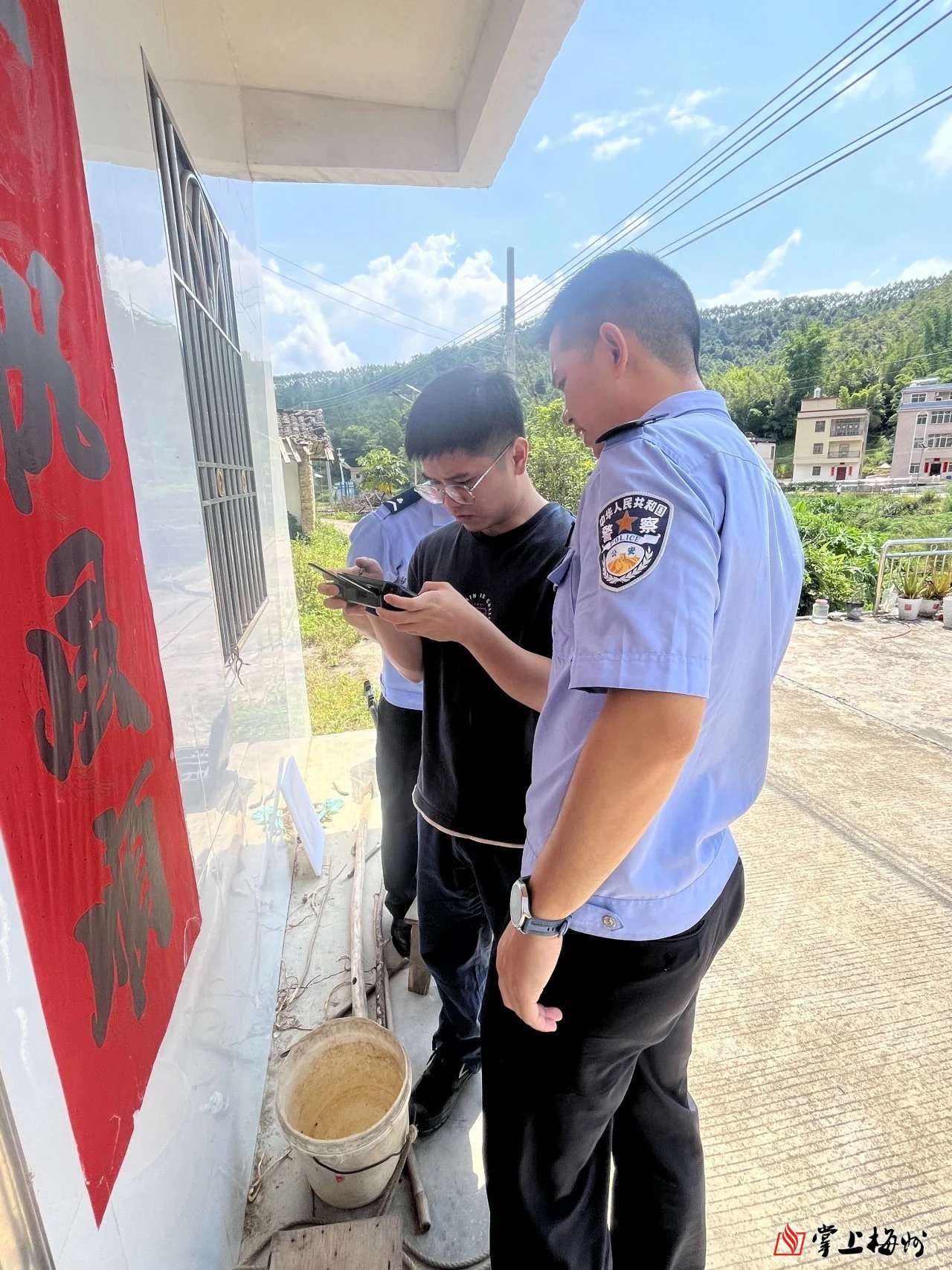 经了解,走失地点位于荒郊野外,灌木丛生且人烟稀少,加之水牛长期野外放养,活动范围不固定,传统的人力搜寻方式难度较大。接到电话后,砂田供电所立即安排“机手”与民警及村民汇合,用搭载红外成像功能的无人机对附近区域开展地毯式搜寻,并让村民对照实时画面进行确认。30分钟后,“机手”张皓然突然指着屏幕喊:“这个就是了!在那边山坡的灌木丛里!”民警带着村民赶紧往目标地点跑,果然看到出逃的水牛正悠哉地啃着草,时不时还看向头顶盘旋的无人机。