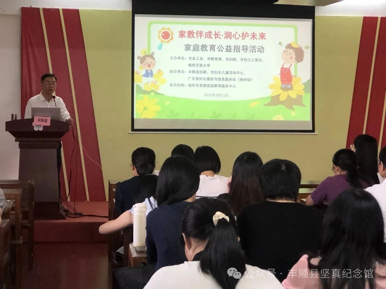 9月12日上午,梅州市妇联与丰顺县妇联在广东省首个全国妇女爱国主义教育基地——丰顺县坚真纪念馆开展“家教伴成长 润心护未来”家庭教育公益指导系列活动,共有80位家长参加。活动聚焦家庭教育痛点与需求,旨在为家长提供科学、实用的家教指导,助力孩子健康成长。