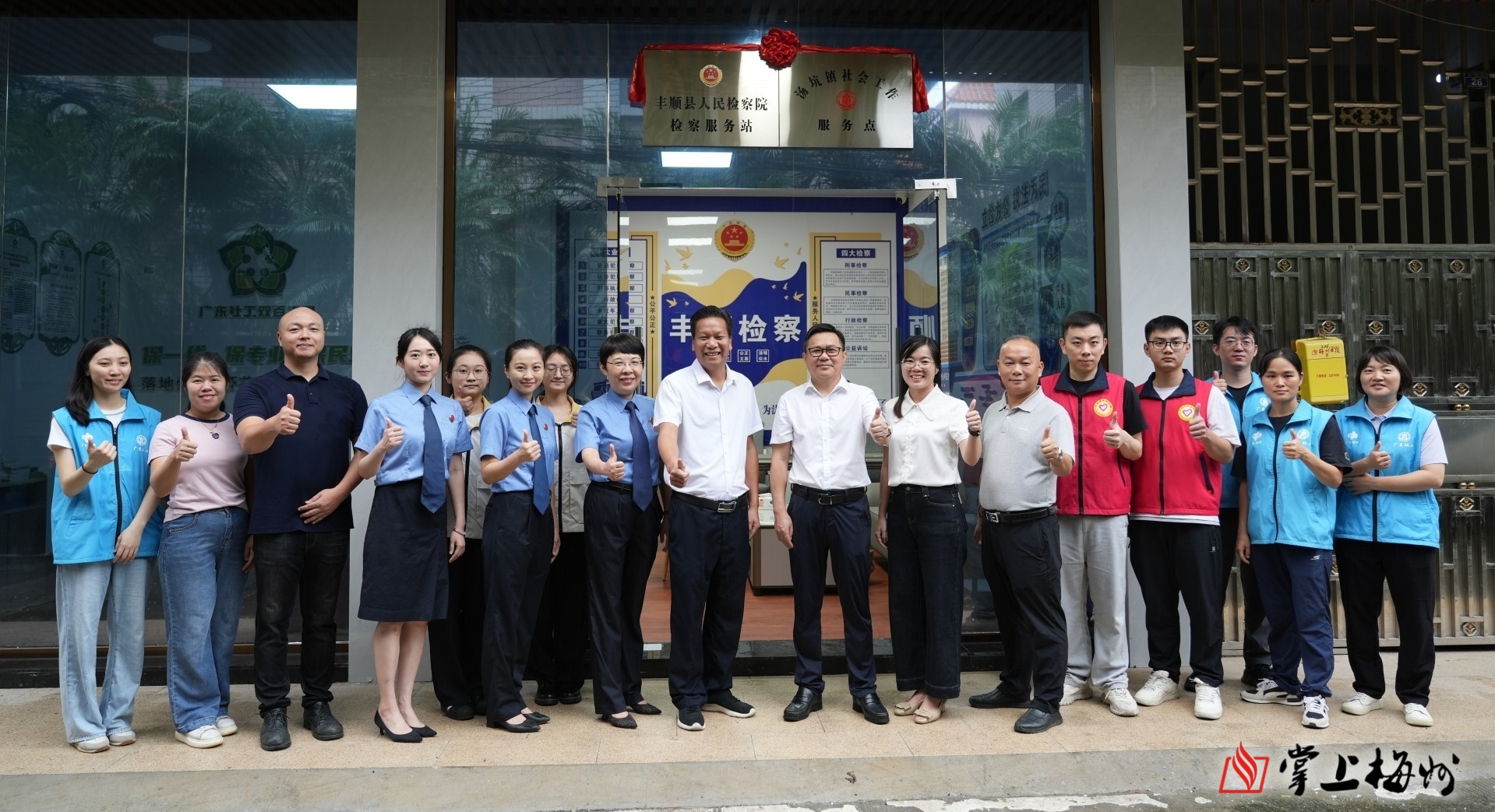 掌上梅州讯 9月19日上午,全市首家全链条社区型综合工作服务站在丰顺县汤坑镇五一社区正式揭牌运行。作为丰顺县检察院联合汤坑镇政府、团县委共同打造的民生与青少年保护新阵地,该服务站的落地,标志着该县在社区便民服务与青少年权益保障领域成功迈出“资源整合、协同发力”的关键一步,标志着“丰青护未・护苗成长”行动正式启动。县政协副主席、汤坑镇党委书记饶富将,县检察院党组书记、检察长李炎飞,汤坑镇镇长蔡礼堂、县检察院党组成员、副检察长邱友萍,团县委书记陈彩苹等出席揭牌仪式。