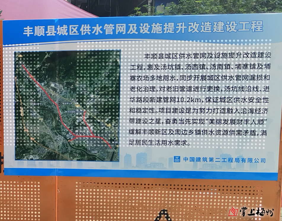 安全稳定的供水是城市高质量发展的重要基础,也是关乎群众福祉的头等大事。党的十八大以来,梅州市丰顺县政府全力推动水利事业高质量发展,将改善广大居民的用水问题作为重大民生实事来抓。中建二局丰顺县城区供水管网及设施提升改造建设工程项目,是丰顺县“百千万工程”的重要支撑项目,覆盖汤坑镇、汤西镇、汤南镇及埔寨农场多地用水,同时包含其他相应配套工程。项目完成后,将惠及周边区域广大居民群众,为当地居民带来更安全、更优质的饮用水体验。