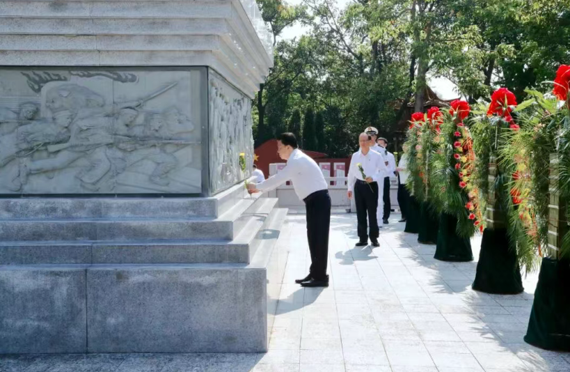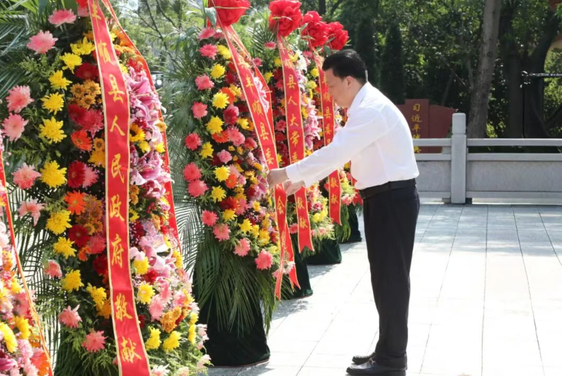 仪式现场,张志锋缓步走向花篮,神情庄重地整理花篮缎带,以表达对先烈的崇高敬意。随后,全体人员有序走到烈士纪念碑前献花,并绕行纪念碑一周,瞻仰纪念碑、缅怀先烈事迹,将全县人民对革命先烈的深切悼念与无限敬仰融入每一个庄重的举动中。