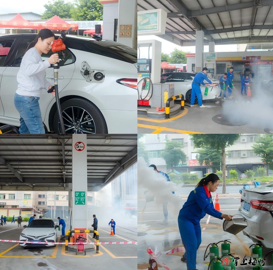 现场迅速实施交通管制,在油站周边关键路口设置警示标志,严禁无关车辆和人员进入,确保救援通道畅通。抢险救援环节,各参演单位紧密配合,救援人员运用泡沫灭火器、灭火毯、消防沙等多种方式对起火车辆及区域进行高效灭火。