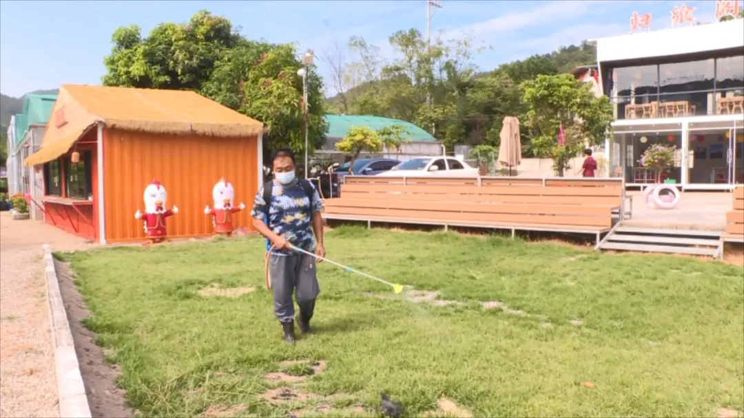 【归家园家庭农场负责人冯双玲:因为我们的游客比较多,每天上午有工人定期进行消杀,对周边的环境特别是人群比较多的地方都会统一进行消杀,每天上午都有固定的人员打扫卫生,积水的地方都有及时清理】