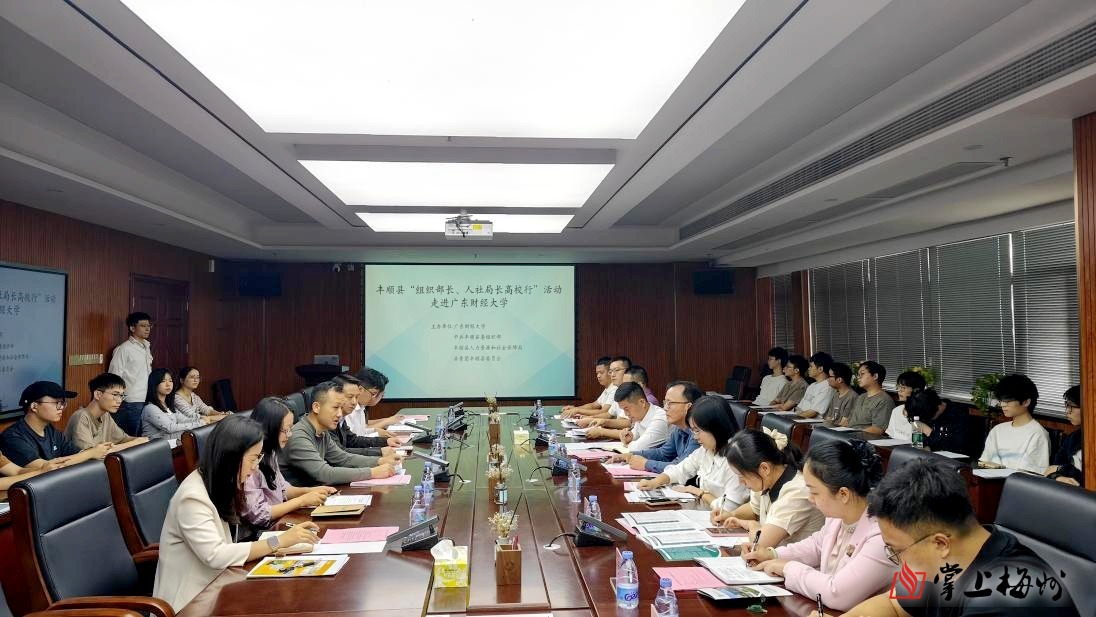 本次活动聚焦县域发展概况介绍、人才政策宣讲、岗位需求对接以及校地合作机制建设等多个方面,行程紧凑、内容务实。丰顺县通过播放县情宣传片、系统解读梅州市“1+N”人才政策以及《梅州市2025年第二轮引进急需紧缺人才公告》,向与会师生全面展示了丰顺的产业基础、发展潜力以及招才引智的诚意。校地双方还围绕人才引进、联合培养、产学研融合等议题展开深入交流,共谋合作发展。