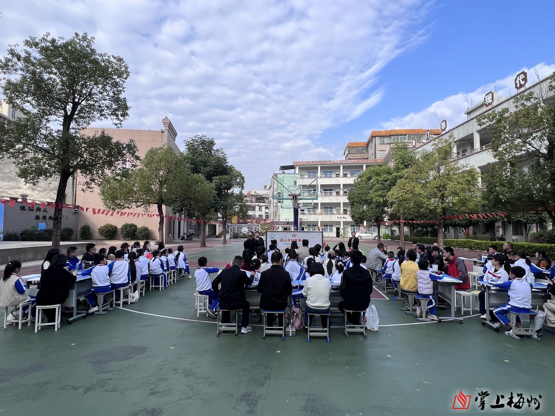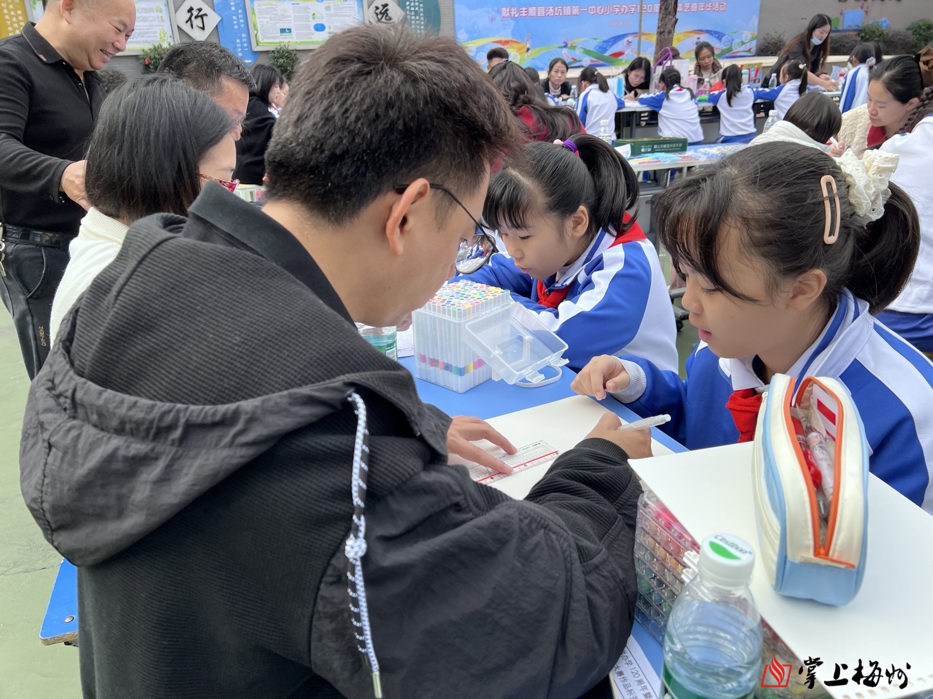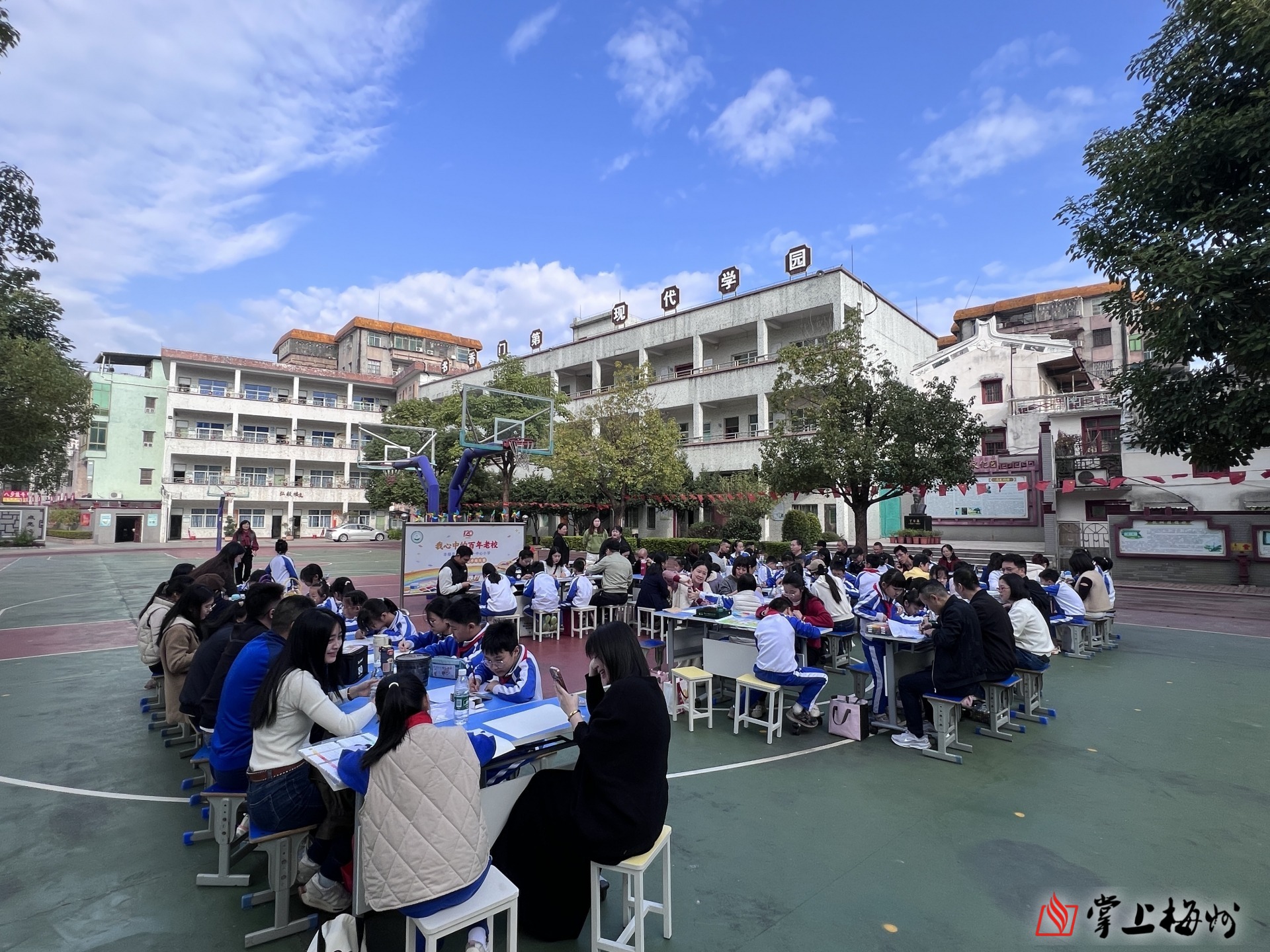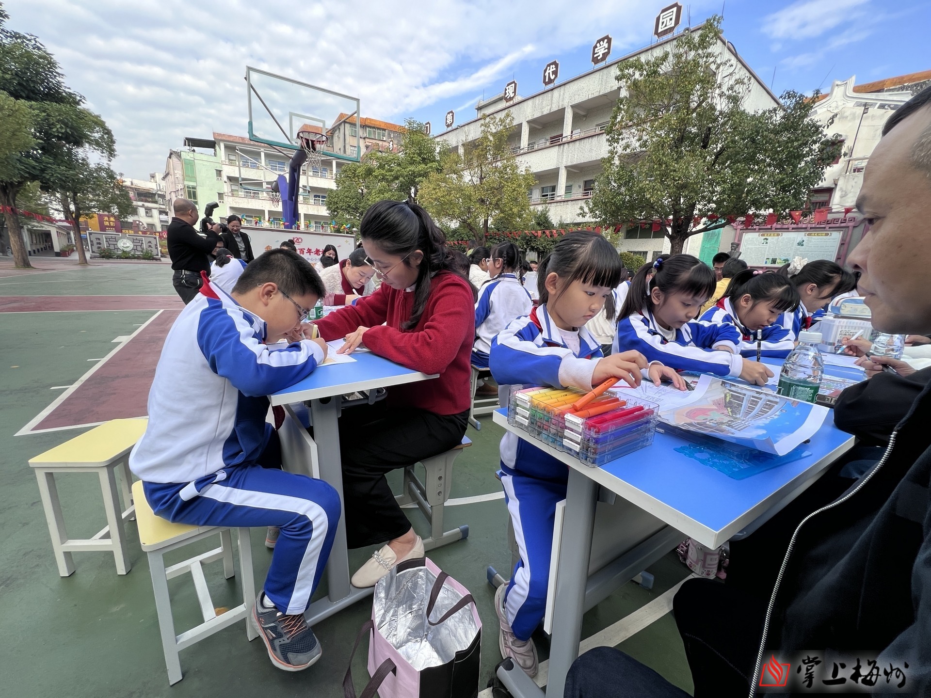 掌上梅州讯 12月23日上午,一场以“我心中的百年老校”为主题的手绘大赛,拉开了汤坑镇第一中心小学办学120周年暨体艺嘉年华系列活动的序幕。师生代表与家长们欢聚一堂,以画笔为媒,以色彩为语,共同为百年老校送上诚挚祝福。