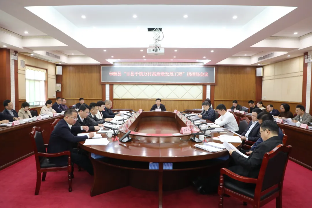 2025年12月31日上午,丰顺县“百县千镇万村高质量发展工程”指挥部会议召开,深入学习贯彻习近平总书记视察广东重要讲话、重要指示精神,传达贯彻全省推进“百县千镇万村高质量发展工程”促进城乡区域协调发展现场会精神,认真落实省委“1310”具体部署和市委工作安排,研究部署下一阶段工作,着力提升“三年初见成效”成色,为实现“五年显著变化”夯实基础。县委书记张志锋主持会议并讲话。丰顺县人大常委会主任邱翠茂,县政协主席李瑞金,县委副书记夏兰亭出席会议。