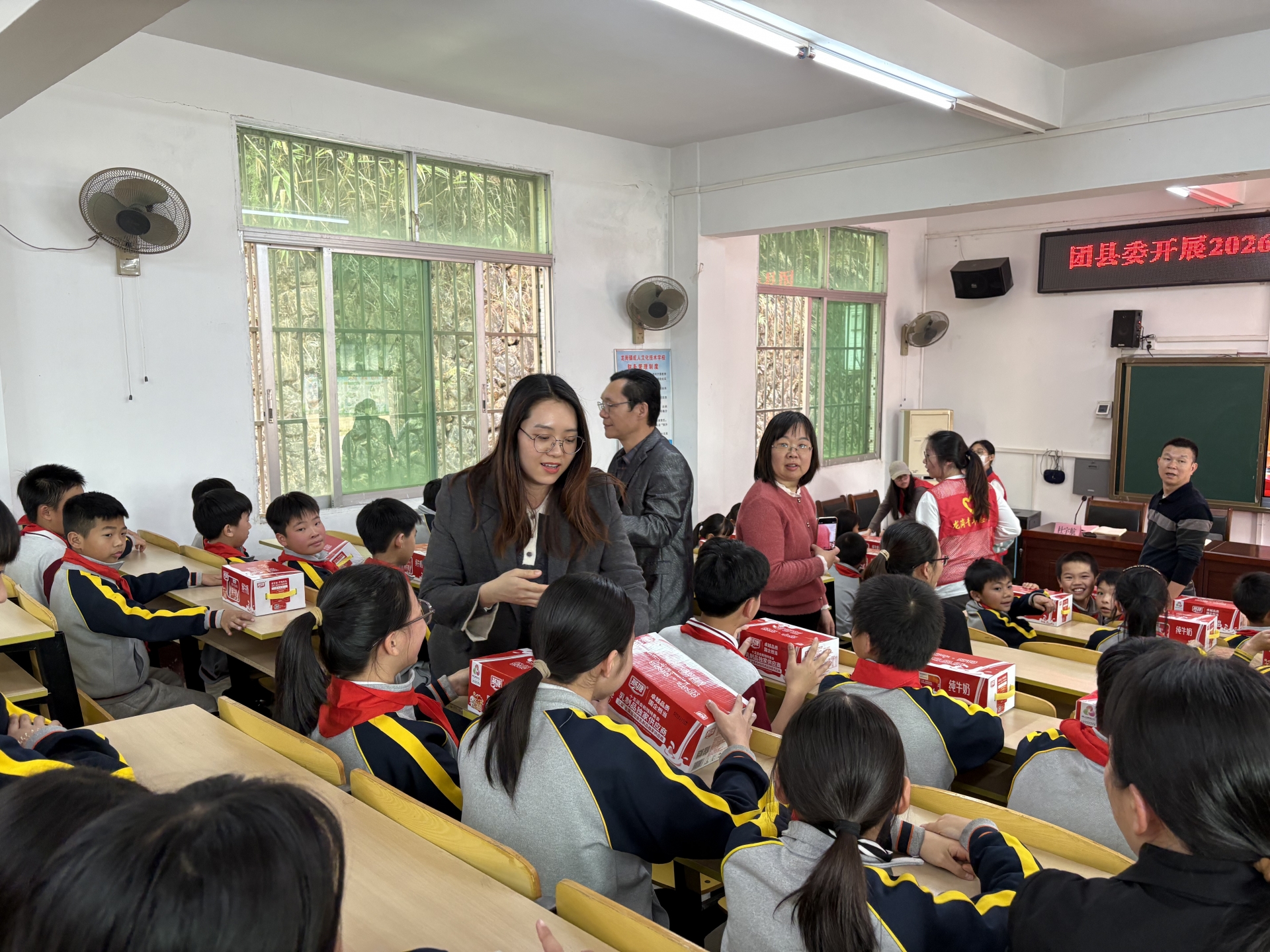 活动中,广东燕塘乳业股份有限公司代表张新雨经理代表企业向丰顺团县委捐赠了500箱爱心牛奶。团县委相关负责人向广东燕塘乳业股份有限公司回赠爱心牌匾,感谢企业对青少年关爱事业的大力支持。随后,与会领导嘉宾共同为学生赠送爱心牛奶,传递新春温暖与关爱。
