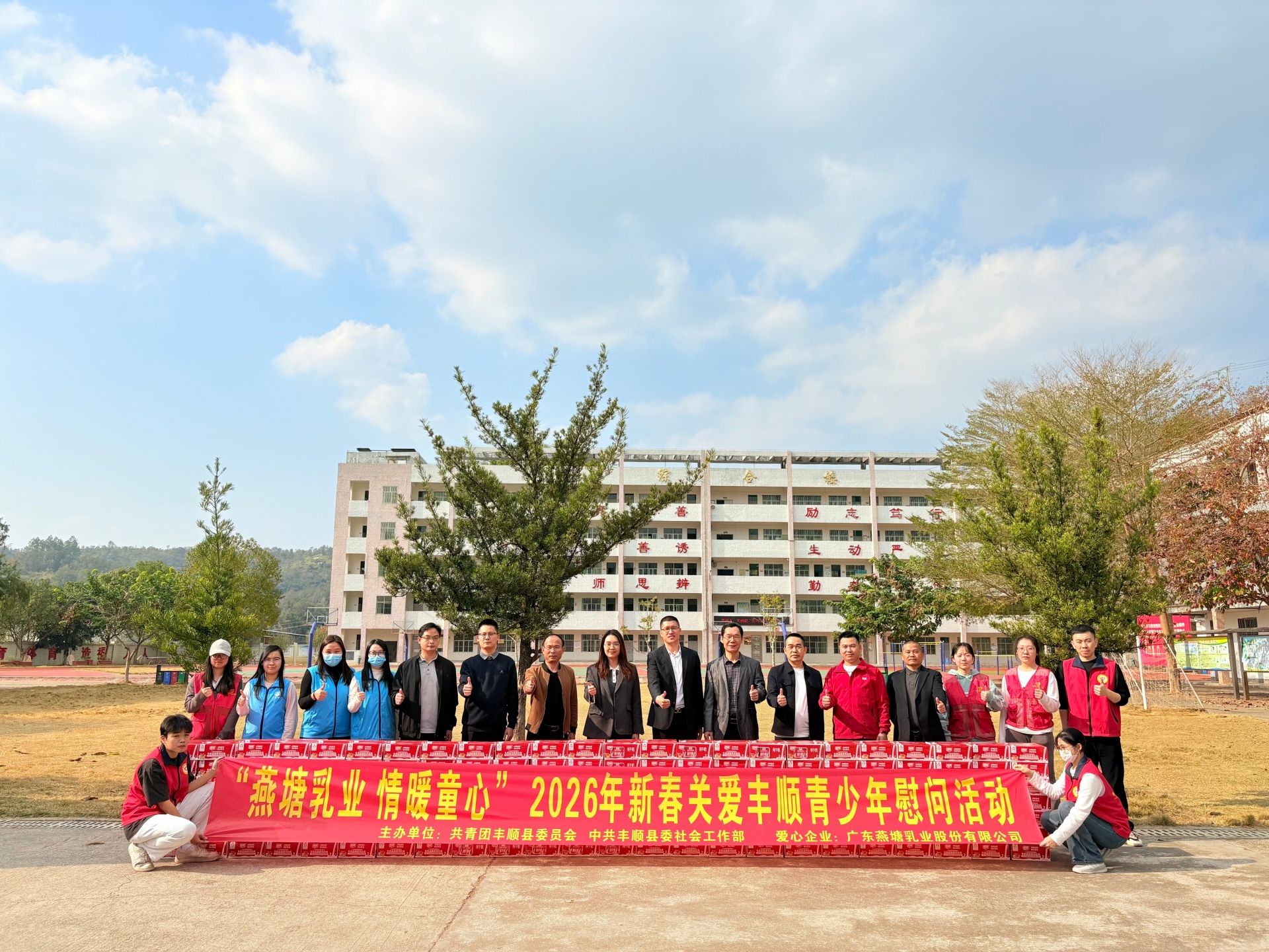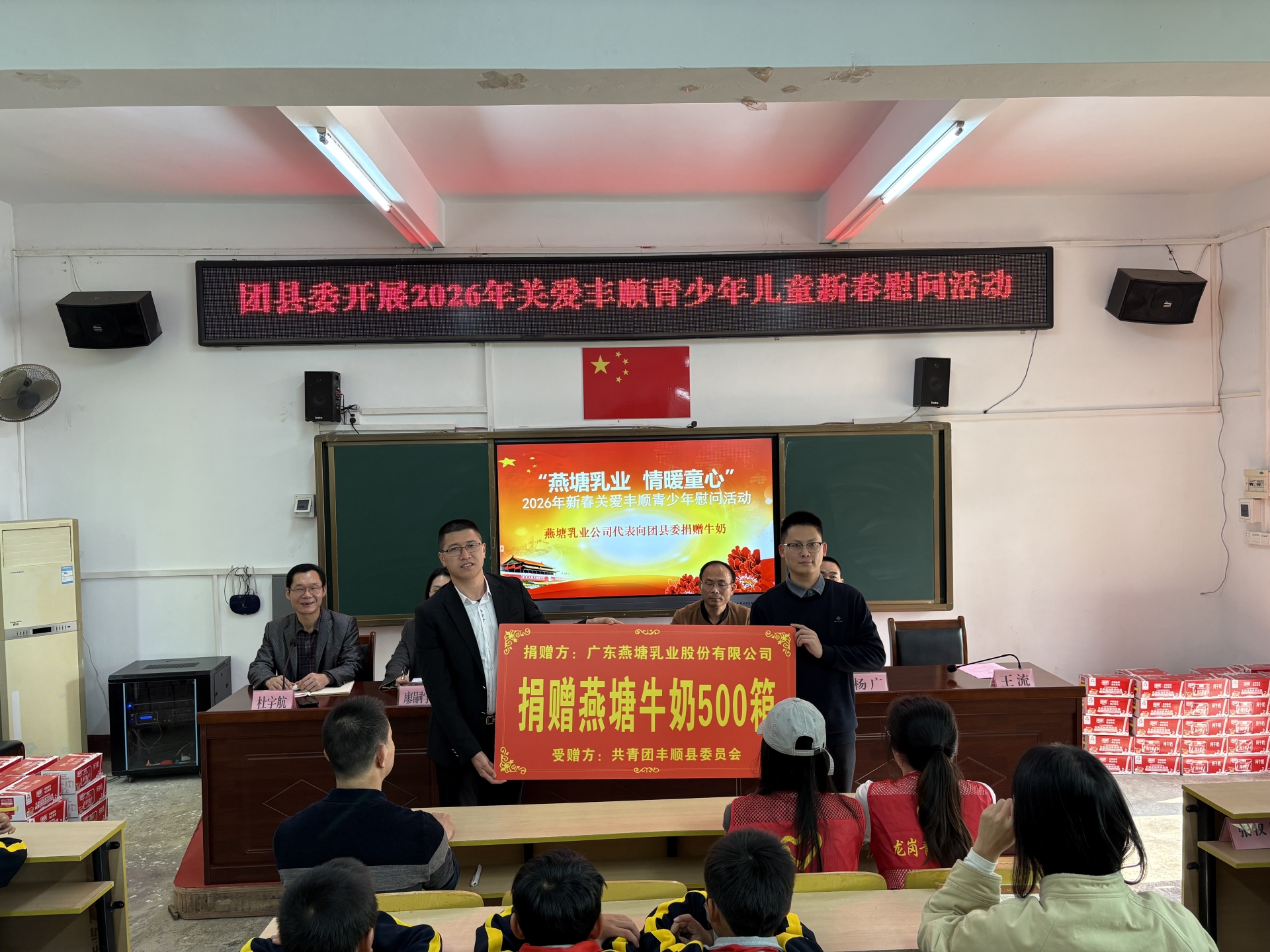 本报讯 辞旧迎新团圆季,暖心护童情更浓。为进一步加强对青少年儿童的关心关爱,让丰顺县青少年在新春佳节来临之际感受到党和社会的关怀,1月27日,丰顺团县委、中共县委社会工作部联合广东燕塘乳业股份有限公司在龙岗镇龙岗学校举办 “燕塘乳业 情暖童心” 2026年新春关爱丰顺青少年慰问活动。