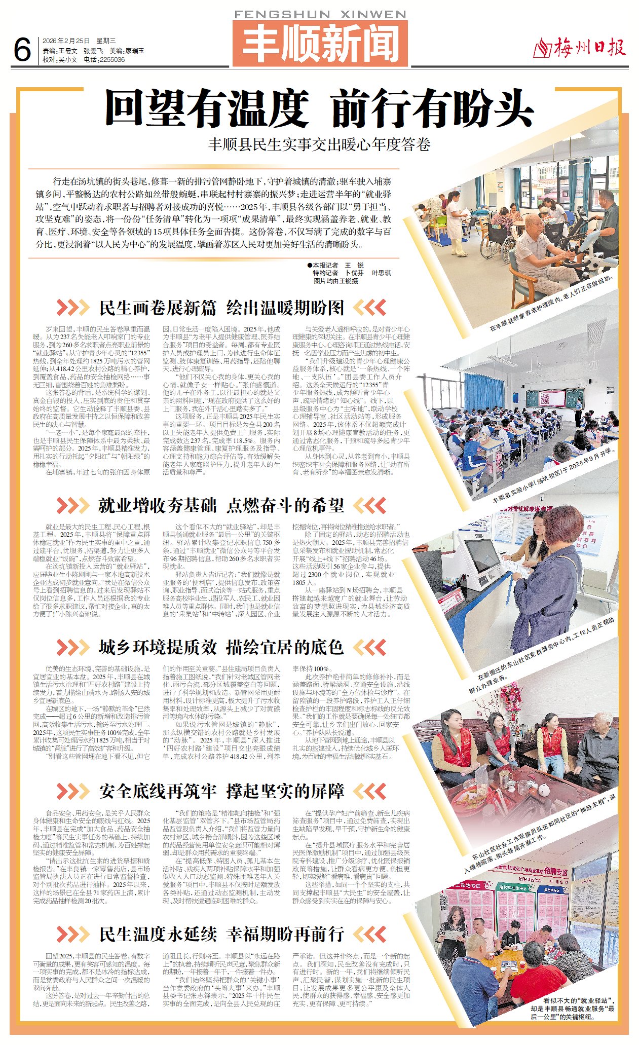 岁末回望,丰顺的民生答卷厚重而温暖。从为237名失能老人叩响家门的专业服务,到为260多名求职者点亮职业前景的“就业驿站”;从守护青少年心灵的“12355”热线,到全年处理约1825万吨污水的管网延伸;从418.42公里农村公路的精心养护,到覆盖食品、药品的安全抽检网络……事无巨细,皆围绕着百姓的急难愁盼。