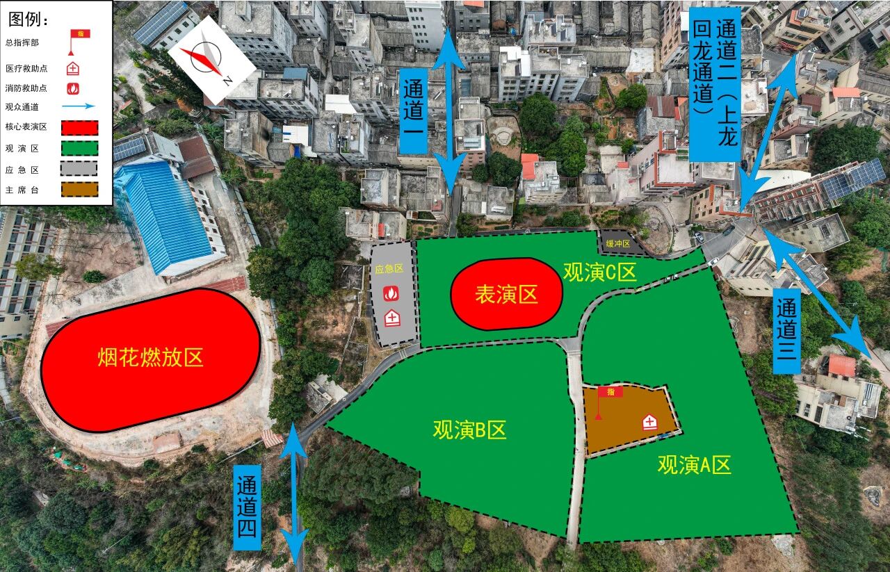 二、请自觉服从现场工作人员、安保人员的引导,进出火龙广场时不要在有紧急疏散标志的地段、通道、出入口长时间停留,请勿跨区或滞留过道,禁止翻越栏杆进入活动场地。