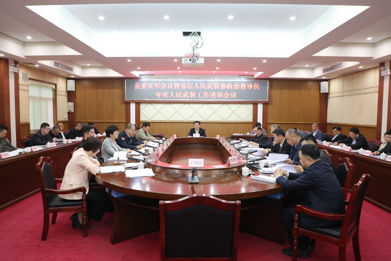 日前,丰顺县委议军会议暨基层人民武装部政治教导员年度人民武装工作述职会议召开,传达学习习近平总书记关于国防和军队建设重要讲话精神以及省委、市委有关会议精神,总结全县武装工作,听取各镇人民武装部政治教导员年度工作述职,研究部署下一步重点工作。县委书记、县人武部党委第一书记张志锋主持会议并讲话。县委副书记、县长凌望远,县人大常委会主任邱翠茂,县政协主席李瑞金出席会议。
