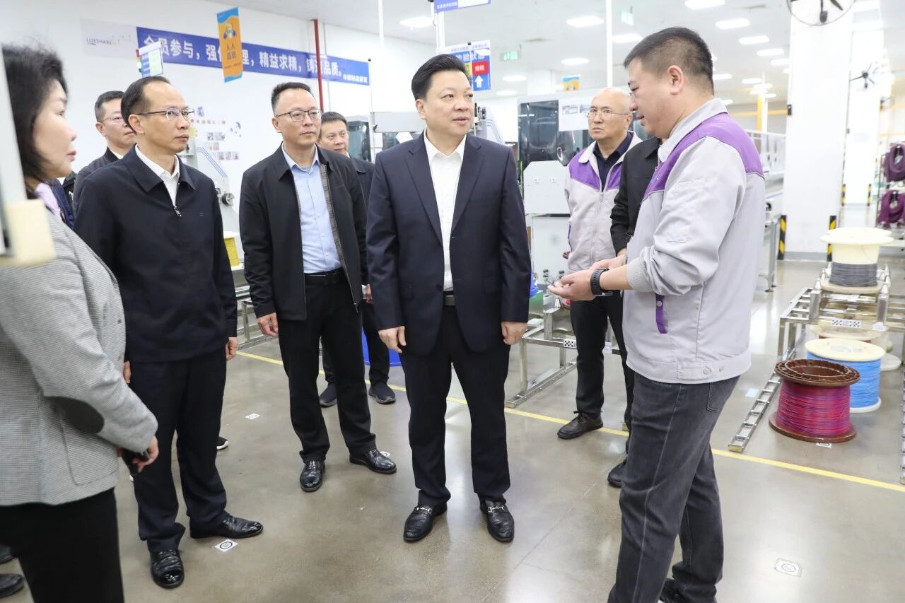 图为丰顺县委书记张志锋,县委副书记、县长凌望远走访丰顺立讯智造有限公司