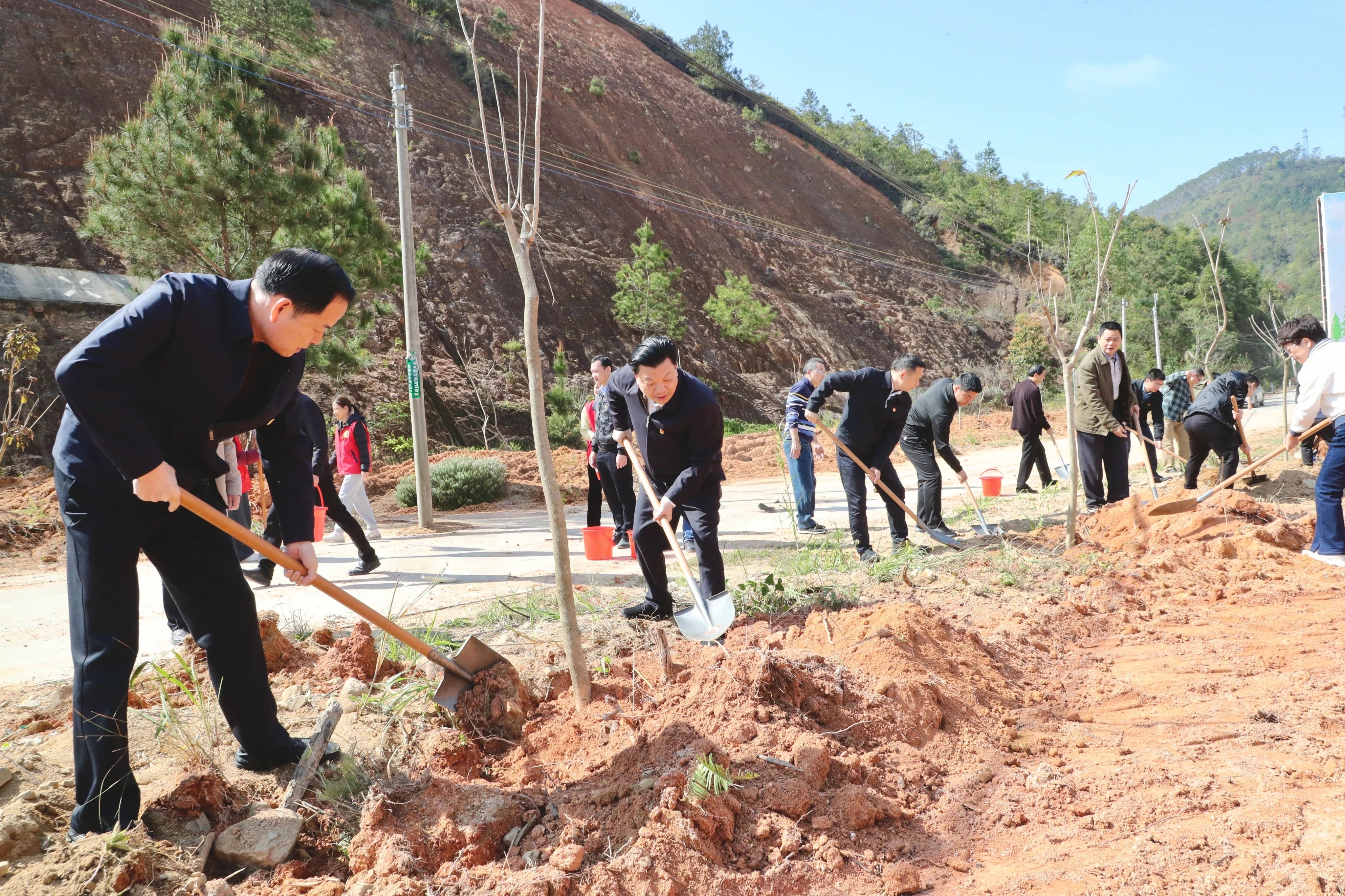 丰顺县委书记张志锋到所在支部机关联基层共建共管的汤南镇东方村植树点参加植树活动