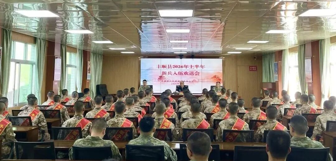 3月14日下午,丰顺县2026年上半年新兵欢送会在县人武部举行,为肩负使命、奔赴军营的新兵们送行鼓劲。县委常委、县人武部领导罗小平,各镇(场)、县有关单位负责人,全体入伍新兵及新兵家长参加活动。
