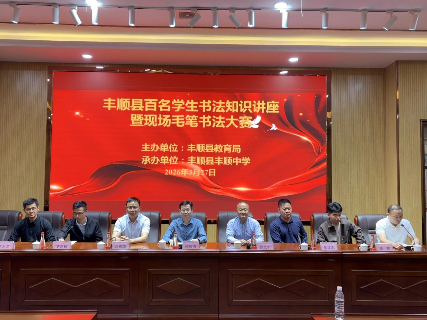 掌上梅州讯 3月27日,2026年丰顺县百名学生书法知识讲座暨现场毛笔书法大赛在丰顺中学举行。本次大赛由丰顺县教育局主办,丰顺中学承办,并得到嘉应学院的大力支持。