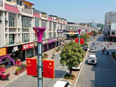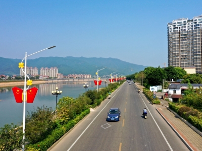 夜幕降临,绵长的国旗灯亮起,成为城区一道靓丽的风景