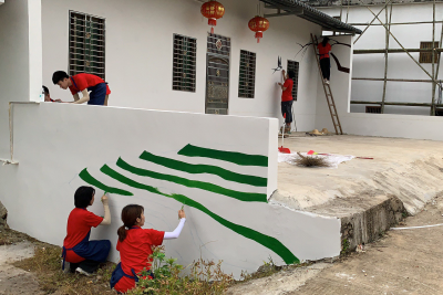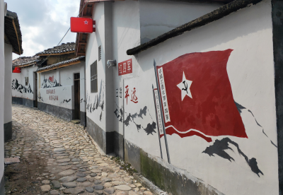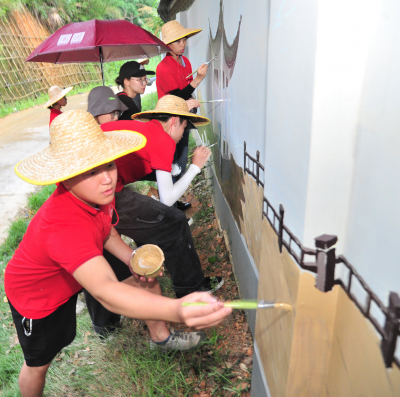 墙上青山、绿水、梅花、柚子等彩绘形象栩栩如生,为百美村自然恬静的乡村美景又增了一笔。