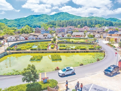 以前破旧零落的广福圩镇,现在已是焕然一新的美丽新农村景象。