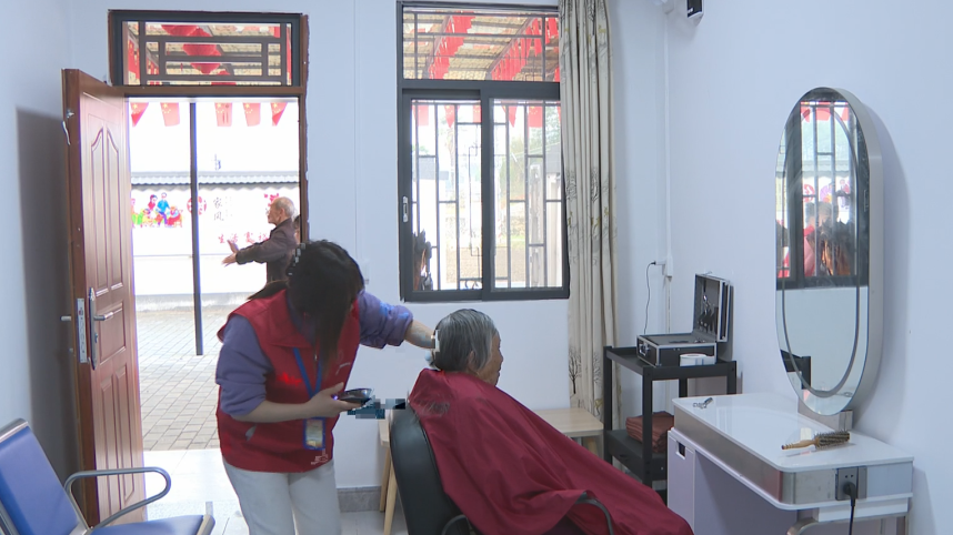 在一楼剪发室的黄阿婆刚剪了一个精神的发型,正打算加入跳操队伍。今年已经九十岁的她比之前活跃了不少,她告诉记者,因为子女在外务工,前些年老伴过世以后,自己觉得特别孤单,自从这个养老服务站建成以后,自己的生活才热闹起来。