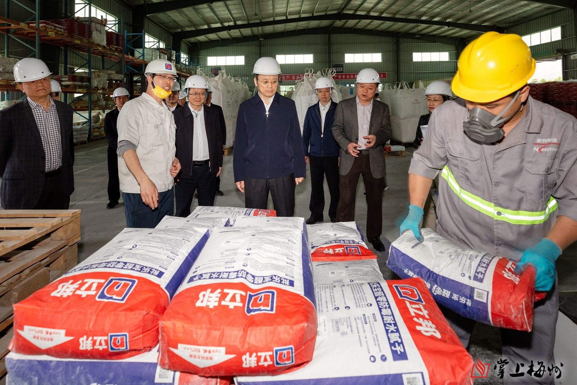 马正勇在广福建材(蕉岭)精化有限公司调研并到生产车间了解企业生产经营情况。