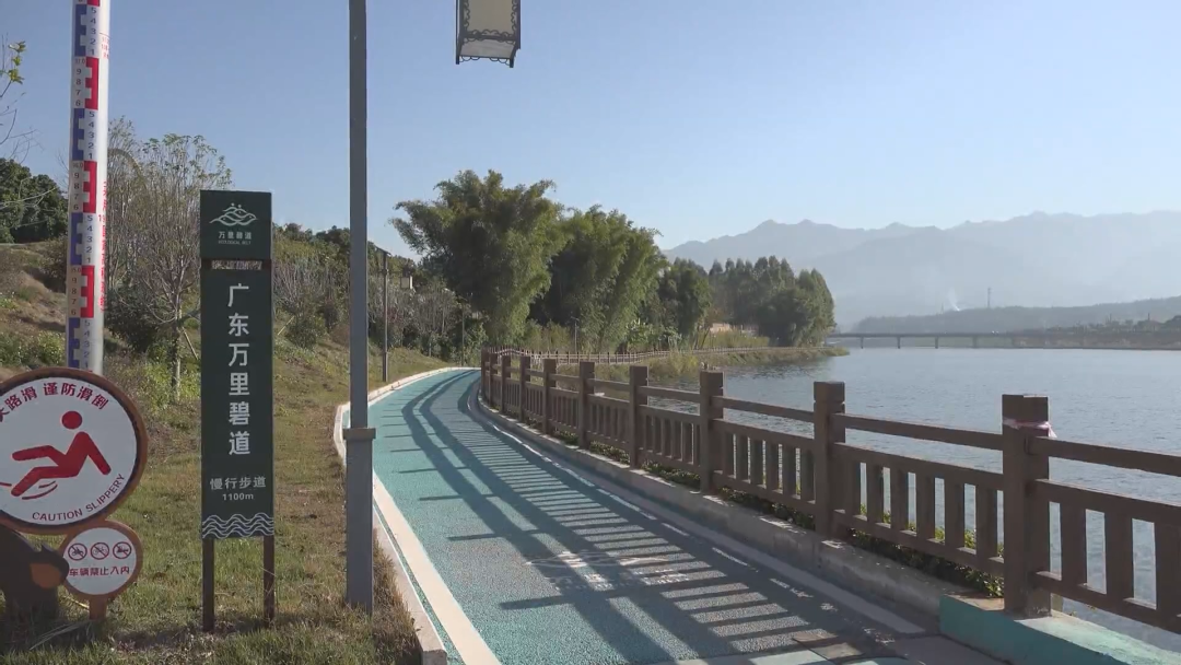蕉城镇龙安村党委副书记 梁红梅:以前这万里碧道是比较荒凉的地带,政府跟水利部门就把这联合打造为万里碧道,村民健身的地方也就有了好去处。早上、傍晚都很多人来这里散步、锻炼身体。