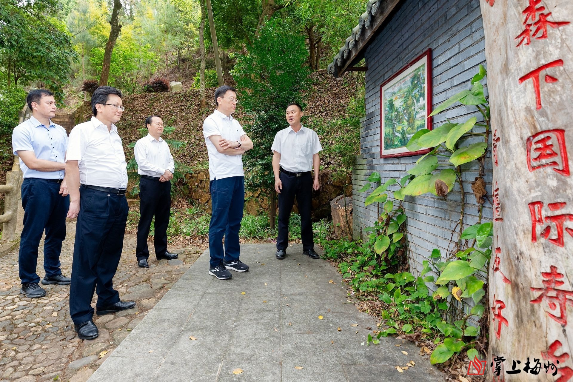 马正勇在蕉岭县蓝坊镇石湖村调研并听取蕉岭县古树保护水平提升情况介绍。