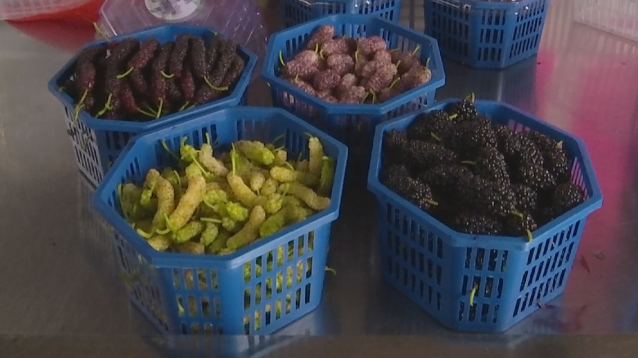 据农场负责人介绍,园内种植有接近50亩的桑葚,共四个品种,除了比较传统的黑桑,其它则是长的台湾长果桑,紫色的桂花蜜,金黄色的金镶葚,四个品种亩产保守估计有1000斤左右,产值大约3万元。同时,种植的桑葚一年能收获两季,分为上季和下季,上季是3月份到5月份采摘,下季是11月份到12月份采摘。